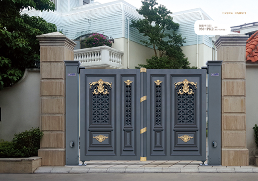 智能平行門(mén)雙開(kāi)938-PK2(深灰+花桿撬金)